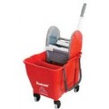 O Conjunto Doblô 30 litros é um equipamento de limpeza formado pelos seguintes itens:Balde com sistema de 2 águas com divisória para 18 e 12 litros;Espremedor com pressão superior,MC39Um dreno de escoamento de água suja eRodízios para facilitar seu deslocamento.A primeira divisória recebe água com o agente químico para limpeza do piso; a segunda divisória será o recipiente da água limpa para enxágue do o refil que efetuará a remoção das sujidades da superfície a ser limpa.